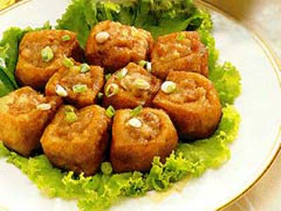 茶宴食品與酒宴亦有區(qū)別,主要是較清淡的面食與果品,統(tǒng)稱茶食。前引《世說》中所提的“粽”即是糯米作的一種茶食,也即是《大金國志》中所提到的茶食——蜜糕。關(guān)于茶食的最好記述見日本的《禪林小歌》,書中在介紹源自中國的唐式茶會時寫到:“端上水晶包子(葛粉做)、驢腸羹(似驢腸)、水精紅羹、鱉羹(狀似)、豬羹(形似豬肝)、甫美羹、寸金羹(因金色寸方得名)、白魚羹(白色、似白魚)、骨頭羹、都蘆羹等羹湯類;乳餅(小麥餅、形似乳房)、茶麻餅、饅頭、卷餅、溫餅等餅類及餛飩、螺結(jié)、柳葉面、相皮面、經(jīng)帶面、打面、素面、韭葉面、冷面等?!笨腿藗兏唷罢_之”(互勸意)。隨后用高緣果盒盛裝龍眼、荔枝、榛子、蘋果、胡桃、榧子、松子、棗杏、栗柿、溫州桔、薯等。由于是禪林,上列食品均為素食。在一般人的茶食中,也有葷菜,如陸游獨好鴨腳,在《聽雪為客置茶果》中寫到:“不饤栗和梨,猶能烹鴨腳?!?/p>