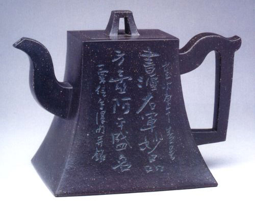 方器造型主要由長短不同的直線組成。如四方、六方、八方及各種比例的長方形等。方器造型方中藏圓,線面挺括平正,輪廓線條分明,給予人們干凈利落,明快挺秀之感。歷來有很多出色的方器造型。如四方壺、八方壺、傳爐壺、觚棱壺、僧帽壺等造型。方器造型規(guī)則要求為“線條流暢,輪廓分明,平穩(wěn)莊重”,以直線、橫線為主,曲線、細線為輔,器型的中軸線、平衡線要正確、勻挺、富于變化。方器除口、蓋、的、把、嘴應(yīng)與壺體相對稱外,還要求做到“方中寓圓,方中求變,口蓋劃一,剛?cè)嵯喾Q”。使壺體不論四方、六方、長方、扁方為壺型,其壺蓋方向均可任意變換,并與壺口嚴密吻合。方器既為幾何形體,也屬筋紋形體。