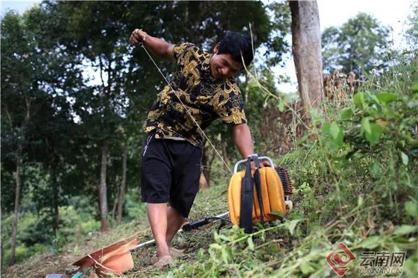 此時,娜四正在茶地里查看茶樹的生長情況,時不時用鋤頭翻翻地、培培土;扎藥則拿著電動割草機清理隔壁山坡上的雜草。割草機的聲音很嘈雜,掩蓋了屋前潺潺的流水聲,停頓的間隙與山林間的蟬鳴相互唱和,卻全然沒有打擾到娜四小兒子在她身后的背簍里熟睡。“這個季節(jié)種茶容易活,我已經(jīng)泡好了茶籽,等那片地清理出來,我們準備開溝種上茶,還有之前種了茶籽沒有活的地方,也要補種一下。”娜四介紹,因為清理工作比較復(fù)雜,夫妻倆打算在小木屋住一晚,天亮了早早開工。