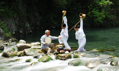 還有一些高雅的茶藝表演,是蒙頂山“禪茶”中所獨(dú)創(chuàng)的十八道獻(xiàn)茶技藝。相傳“龍行十八式”茶技是北宋高僧禪惠大師在蒙頂山結(jié)廬清修時(shí)所創(chuàng)。過(guò)去作為僧人修行的一門功課,“龍行十八式”茶藝只在蒙頂山僧人中流傳,直到清代才逐漸傳入民間。創(chuàng)下融茶道、武術(shù)、舞蹈、禪學(xué)、易理為一體的茶技-蒙頂派“龍行十八式”。佛教文化和茶文化的水乳交融,更奠定了蒙山作為世界茶文化圣山的至尊地位。