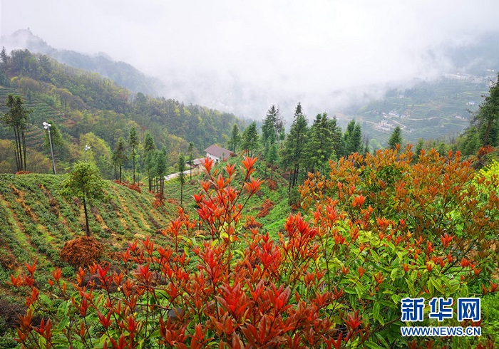 四月,三峽茶旅小鎮(zhèn)萬(wàn)畝茶園吐新綠,云霧繚繞美不勝收。新華網(wǎng) 張潘 攝