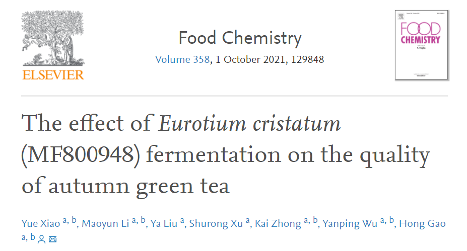 近日,我院高鴻教授團(tuán)隊(duì)以秋茶為原料,利用專(zhuān)利菌株“冠突散囊菌PW-1”進(jìn)行秋茶發(fā)酵,探究冠突散囊菌PW-1菌株對(duì)黑茶品質(zhì)的提升作用及機(jī)制,相關(guān)研究成果以我院為第一單位發(fā)表在食品科技領(lǐng)域頂級(jí)期刊《Food Chemistry》上,題為“The effect of Eurotium cristatum (MF800948) fermentation on the quality of autumn green tea”。我院博士研究生肖月為第一作者,高鴻教授為通訊作者,該項(xiàng)目獲得了四川省科技計(jì)劃項(xiàng)目基金(No. 20ZDYF3186)的支持。