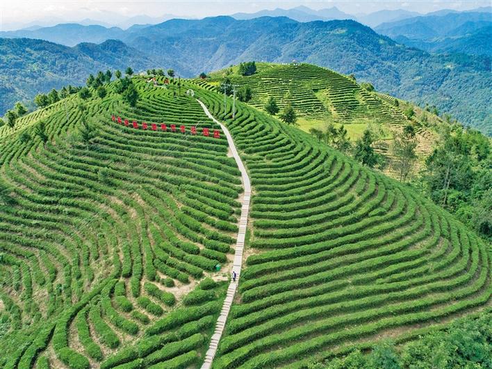 8月5日,航拍平利縣老縣鎮(zhèn)蔣家坪村女媧鳳凰茶業(yè)有限公司茶園。