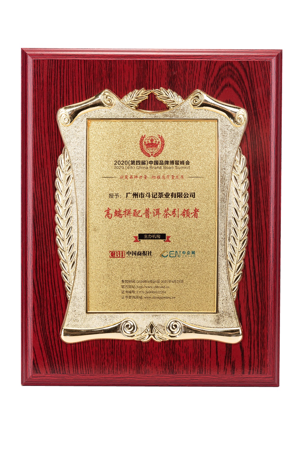 斗記普洱茶高端拼配普洱茶引領(lǐng)者榮譽(yù)